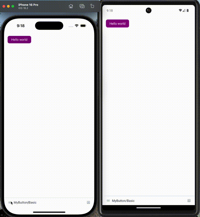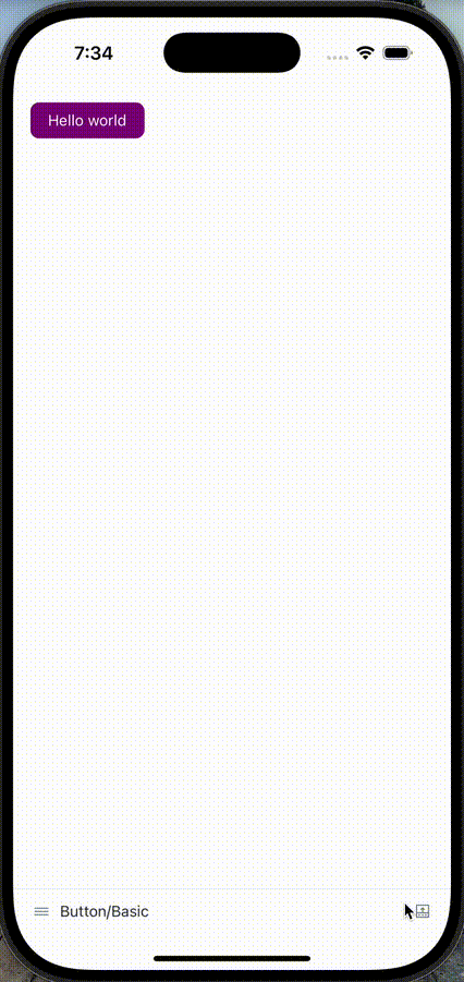 Using argTypes, you can simulate user interactions like button presses in isolation. The decorator adds layout padding for better visual representation in Storybook.import { View } from 'react-native'; import type { Meta, StoryObj } from '@storybook/react'; import Button from '.'; const meta = { title: 'Button', component: Button, argTypes: { onPress: { action: 'pressed the button' }, }, args: { text: 'Hello world', }, decorators: [ (Story) => ( <View style={{ padding: 16, alignItems: 'flex-start' }}> <Story /> </View> ), ], } satisfies Meta<typeof Button>; export default meta; type Story = StoryObj<typeof meta>; export const Basic: Story = {}; export const AnotherExample: Story = { args: { text: 'Another example', }, };
